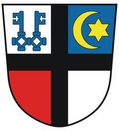 | Keywords: DEU Kempen COA.svg blazon of de Stadt Kempen Kempen Kempen de Der Stadt ist mit Urkunde des Regierungspräsidenten in Düsseldorf vom 08 April 1971 das Recht zur Führung eines Wappens eines Dienstsiegels und einer Flagge eines Banners verliehen worden žDas Wappen wird von einem durchgehenden schwarzen Kreuz gevierteilt rechts oben in Silber Weiß 2 miteinander verbundene mit ihren Bärten nach außen gewendete blaue Schlüssel links oben in Blau ein abnehmender goldener gelber Mond in dessen Rundung ein sechsstrahliger goldener gelber Stern steht rechts unten rot links unten silbern weiß Das älteste Stadtsiegel von 1305 zeigt bereits die Mondsichel mit Stern sowie zwei gegeneinander gekehrte Schlüssel Das Stadtwappen erscheint erstmals 1486 auf der Rückseite des Zelebrantenstuhles in der Pfarrkirche Das schwarze Kreuz symbolisiert die Landesherrschaft des Kölner Erzbischofs und Kurfürsten die Schlüssel gehören dem heiligen Petrus bei Mond und Sichel handelt es sich um Symbole der heiligen Maria Schutzpatronin der Pfarrkirche Die Farben schwarz und weiß bzw silbern stammen aus dem Wappen des früheren Landesherrn rot und blau sind die Marienfarben from 1659 The keys and moon/star were now quarters in the new arms The cross most likely is also the cross of the state of Köln 1971-04-08 unknown - Neubearbeitung des Wappens für die Stadt Kempen durch FZohren http //www ngw nl/heraldrywiki/index php title Kempen PD-Coa-Germany other versions Wappen von Kempen png 50 DEFAULTSORT Kempen Coats of arms of Kempen 1 crescent Or in heraldry Cross of Cologne in heraldry Keys of Saint Peter in heraldry Quarterly shields in civic heraldry Star and crescent in heraldry 1 six rays Or in heraldry Argent azure gules Or sable in heraldry Coats of arms by Edwin-Arnold Pleiner |