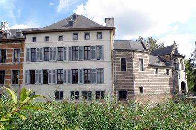 | Keywords: Deurne Bisschoppenhof13.JPG fr Anvers Belgique Château et manoir de plaisance dit Bisschoppenhof complexe de bâtiments contigus sis Suzanne Spanhovenstraat à Deurne-Nord dans la banlieue nord-est d ™Anvers sur le bord d ™un terrain circulaire arboré et entouré d ™une douve Le complexe comprend une porterie du XVIe siècle auquel donne accès un pont à arche ; attenant à celle-ci sur son côté gauche le corps de logis principal daté du XVIIe mais remanié not les baies et le perron fin XIXe ; contigu à ce dernier un autre corps de logis extension datant du début XIXe <br/> Vue générale de l'édifice façade nord-ouest On distingue de gauche à droite lextension du XIXe brique rouge soubassement de pierre ; visible en partie le corps de logis principal pierre blanche au centre la porterie avec son pont à arche <br/> nl Antwerpen district Deurne Bisschoppenhof voormalig hof van plaisantie gebouwencomplex gelegen Suzanne Spanhovenstraat nr 22 binnen een omwaterd cirkelvormig terrein thans park en omvattende een poortgebouw 16de eeuw met stenen boogbrug; hiertegen aanleunend hoofdgebouw uit 17de eeuw aangepast eind 20ste eeuw; hierop aansluitend uitbreiding uit eind 19de eeuw <br/> In beeld noord-westgevel met poortgebouw rechts met boogbrug hoofdgebouw midden witstenen gevel uitbreiding gedeeltel zichtbaar links rode baksteen <br/> Vgl verder http //inventaris vioe be/dibe/relict/11319 Inventaris Bouwkundig Erfgoed self-photographed Torsade de Pointes 2010-09 Bisschoppenhof Deurne |