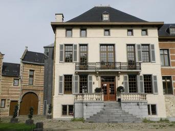 | Keywords: Deurne Bisschoppenhof24.JPG fr Anvers Belgique Château et manoir de plaisance dit Bisschoppenhof complexe de bâtiments contigus sis Suzanne Spanhovenstraat à Deurne-Nord dans la banlieue nord-est d ™Anvers sur le bord d ™un terrain circulaire arboré et entouré d ™une douve Le complexe comprend une porterie du XVIe siècle auquel donne accès un pont à arche ; attenant à celle-ci sur son côté gauche le corps de logis principal daté du XVIIe mais remanié not les baies et le perron fin XIXe ; contigu à ce dernier un autre corps de logis extension datant du début XIXe <br/> Façade sud-est de l'édifice On distingue de gauche à droite la porterie brique et pierre en strates alternantes vue partielle ; le corps de logis principal pierre blanche avec perron et balcon ; et lextension dix-neuviémiste brique rouge soubassement de pierre visible en petite partie seulement <br/> nl Antwerpen district Deurne Bisschoppenhof voormalig hof van plaisantie gebouwencomplex gelegen Suzanne Spanhovenstraat nr 22 binnen een omwaterd cirkelvormig terrein thans park en omvattende een poortgebouw 16de eeuw met stenen boogbrug; hiertegen aanleunend hoofdgebouw uit 17de eeuw aangepast eind 20ste eeuw; hierop aansluitend uitbreiding uit eind 19de eeuw <br/> In beeld zuid-oostgevel met 16de eeuws poortgebouw links speklagen 17de eeuws hoofdgebouw midden witstenen gevel en 19de eeuwse uitbreiding rechts gedeeltel te zien <br/> Vgl verder http //inventaris vioe be/dibe/relict/11319 Inventaris Bouwkundig Erfgoed Photographie personnelle Torsade de Pointes Août 2010 Bisschoppenhof Deurne |