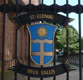 | Keywords: Deus Salus Ludwigskirche Ludwigshafen.JPG Wappen und Wahlspruch Anton Schlembach 1932 Bischof von Speyer 1983-2007 en St Ludwig in Ludwigshafen Germany Own Immanuel Giel 2009-06 St Ludwig Ludwigshafen am Rhein Coats of arms of bishops of the Roman Catholic Diocese of Speyer Wrought iron coat of arms |
