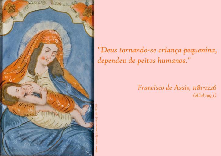| Keywords: Deus tornando-se criança pequenina, dependeu de peitos humanos. Francisco de Assis 1181-1226 (2Cel 199 1).svg Pt Deus tornando-se criança pequenina dependeu de peitos humanos Francisco de Assis 1181-1226 2Cel 199 1 2012-12-18 08 58 30 Hinterglasbild Maria Lactans 18Jh jpg glass painting anonymous 18th century <br>for derivative Eugenio Hansen OFS cc-zero Uploaded with UploadWizard Francis of Assisi Quotations in Portuguese language Paintings of Madonna lactans | ||||