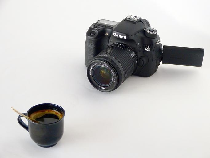 Keywords: device camera digital apn canon 70d black coffee cup coffee spoon reflex