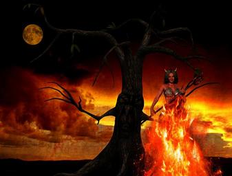 Keywords: devil hell woman fantasy fire purgatory mood weird atmosphere night moonlight creepy daemon full moon darkness tree spirit funeral pyre burn twilight fairy tales evil teufelin night sky sky colors