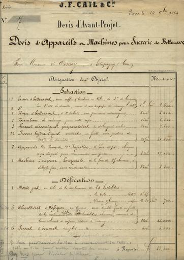 Keywords: Devis de la Maison CAILL.JPG fr Devis d'avant projet pour le materiels de la Sucrerie d'Etrépagny Les Archives de la Sucrerie d'Etrépagny Société J F CAIL Cie 1863-09-14 PD-old-100 Uncategorized 2014 August 25