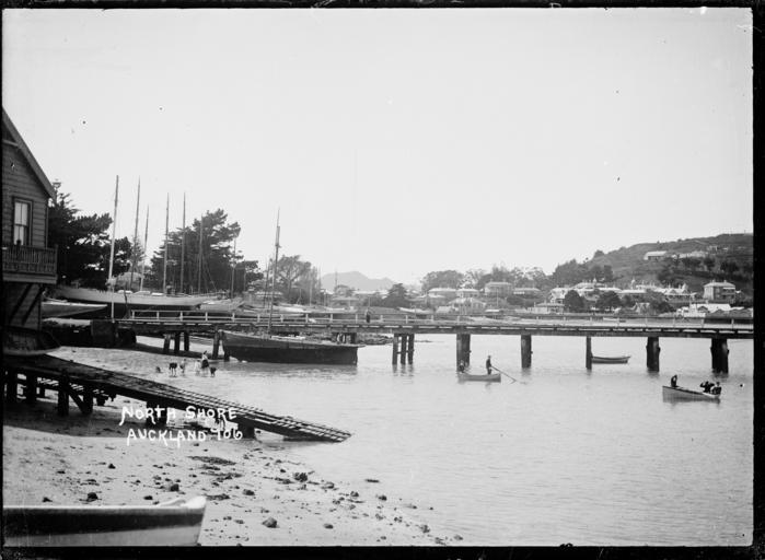 | Keywords: blackandwhite monochrome photo border outdoor black and white Devonport, Auckland, with Duders Wharf. Skids for the rowing club are in the foreground. North Head is on the right and Rangitoto Island is visible in the distance. Children are playing at the water's edge. Photograph taken by William A Price, circa 1900-1930. Inscriptions: Inscribed - Photographer's title on negative -bottom left: North Shore Auckland 906. Quantity: 1 b&w original negative(s). Devonport, Auckland, with Duders Wharf. Price, William Archer, 1866-1948 :Collection of post card negatives. Ref: 1/2-001583-G. Alexander Turnbull Library, Wellington, New Zealand. natlib.govt.nz/records/22865036 Devonport, Auckland, with Duders Wharf. Skids for the rowing club are in the foreground. North Head is on the right and Rangitoto Island is visible in the distance. Children are playing at the water's edge. Photograph taken by William A Price, circa 1900-1930. Inscriptions: Inscribed - Photographer's title on negative -bottom left: North Shore Auckland 906. Quantity: 1 b&w original negative(s). Devonport, Auckland, with Duders Wharf. Price, William Archer, 1866-1948 :Collection of post card negatives. Ref: 1/2-001583-G. Alexander Turnbull Library, Wellington, New Zealand. natlib.govt.nz/records/22865036 |