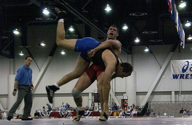 | Keywords: DF-SD-06-10733.jpg US Air Force USAF First Lieutenant 1LT Philip Johnston a 211 5-pound Greco-Roman wrestler lifts his opponent during the Mens 96kg Weight Class final match of the 2004 US National Wrestling Championship held in Las Vegas Nevada NV SUBSTANDARD Released to Public The United States Department of Defense website at http //www defenselink mil http //www defenselink mil 2004-04-09 21 54 00 Airman 1st Class Daniel Decook USAF PD-USGov-Military-Air Force PD-USGov-Military PD-USGov Greco-Roman wrestling |
