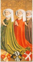 | Keywords: DH-Ulrich der Vielgeliebte Gattinnen.jpg Die drei Ehefrauen Graf Ulrichs des Vielgeliebten Margarete von Cleve 1433 - 1480 Elisabeth von Bayer-Landshut 1419 - 1451 Margarethe von Savoyen 1426 - 1470 Württembergisches Landesmuseum Stuttgart eingescannt aus Hansmartin-Decker-Hauff Frauen im Hause Württemberg Leinfelden-Echterdingen 1997 ISBN 3-87181-390-7 S 27 Reproduction of a painting that is in the public domain because of its age PD-Art Margarethe von Cleve Marguerite of Savoy 1410 Elisabeth von Bayern-Landshut 1419 “1451 Württembergisches Landesmuseum Stuttgart Coats of arms of the House of Savoy |
