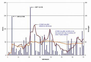 | Keywords: Dhoni ODI Graph.jpg One Day International Career Graph of Mahendra Singh Dhoni Orange line indicates progression of career average while the brown line indicates ten most recent innings at that point This graph was generated with Microsoft Excel 2002 using data from http //statserver cricket org/guru sdb player;playerid 7593;class odiplayer;filter basic;team 0;opposition 0;notopposition 0;season 0;homeaway 0;continent 0;country 0;notcountry 0;groundid 0;startdefault 2004-12-23;start 2004-12-23;enddefault 2007-05-12;end 2007-05-12;tourneyid 0;finals 0;daynight 0;toss 0;scheduledovers 0;scheduleddays 0;innings 0;result 0;followon 0;seriesresult 0;keeper 0;captain 0;dnp 0;recent ;viewtype aro_list;runslow ;ruwicketslow ;wicketshigh ;dismissalslow ;dismissalshigh ;caughtlow ;caughthigh ;caughttype 0;stumpedlow ;stumpedhigh ;csearch ;submit 1; cgifields viewtype Cricinfo website The information in this chart is current as of 15 May 2007 own 2007-05-15 Vimalkalyan wikipedia en Bad JPEG SVG Convert to SVG graph Update en wikipedia Vimalkalyan Original upload log en wikipedia Jfd34 CommonsHelper en wikipedia Dhoni_ODI_Graph jpg 2007-05-18 07 18 Vimalkalyan 1364×929 382323 bytes <nowiki></nowiki> 2007-05-15 11 17 Vimalkalyan 909×619 150798 bytes <nowiki>One Day International Career Graph of Mahendra Singh Dhoni Orange line indicates progression of career average while the brown line indicates ten most recent innings at that point This graph was generated with Microsoft Excel 2002 using data f</nowiki> Check categories 2012 September 20 en wikipedia Mahendra_Singh_Dhoni 1 Mahendra Singh Dhoni |
