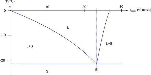 | Keywords: Diagramme binaire eau sel.svg en Binary phase diagram for the water + salt sodium chloride system; eutectic at 22 wt of salt T<sub>E</sub> -21 °C Caption L liquid; S solid; L+S solid and liquid mixture; E eutectic fr Diagramme binaire du système eau + sel chlorure de sodium ; eutectique à 22 massique de sel T<sub>E</sub> -21 °C Légende L liquide ; S solide ; L+S mélange liquide et solide ; E eutectique own Cdang 2009-05-13 from a PNG by the same author File Diag phase eau sel png Created with Inkscape Eutectic Water phase diagrams |