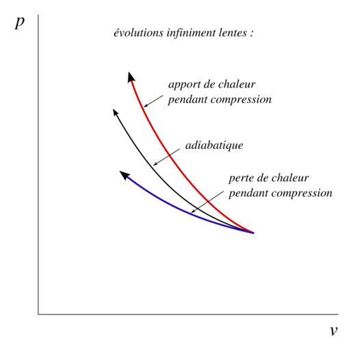 Keywords: Diagramme p-v évolutions infiniment lentes gaz parfait.svg fr Diagramme pression-volume d ™une compression très lente d ™un gaz pour trois cas avec apport de chaleur haut sans transfert de chaleur centre et avec refroidissement bas Si la compression est réalisée à grande vitesse alors les courbes se décalent vers le haut 2013 own Olivier Cleynen other versions cc-zero Uploaded with UploadWizard Pressure-volume diagrams SVG physics SVG charts in French |