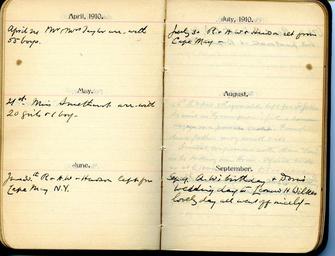 | Keywords: 1880s 1890s 1900s 1910s 1920s diaries home children homechildren April 1910 April 24th, Mr & Mrs Taylor arrived with 55 boys May 1910 21st, Miss Smithurst arrived with 20 girls & 1 boy June 1910 June 30th, R & A W & Hudson left for Cape May N Y July 1910 30th, R & A W & Hudson returned from Cape May September 1910 Sept 9th, A W's birthday & Dora's wedding day to Leonard H Wilkes, lovely day all went off nicely April 1910 April 24th, Mr & Mrs Taylor arrived with 55 boys May 1910 21st, Miss Smithurst arrived with 20 girls & 1 boy June 1910 June 30th, R & A W & Hudson left for Cape May N Y July 1910 30th, R & A W & Hudson returned from Cape May September 1910 Sept 9th, A W's birthday & Dora's wedding day to Leonard H Wilkes, lovely day all went off nicely |