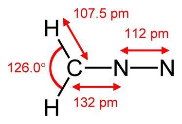 | Keywords: Diazomethane-dimensions-from-CRC-MW-IR-2D.png Dimensions of the diazomethane molecule H<sub>2</sub>CN<sub>2</sub> Bond orders deliberately omitted for clarity Structural information determined by microwave and infrared spectroscopy from http //www hbcpnetbase com/ CRC Handbook 88<sup>th</sup> edition Structure drawn in http //www cambridgesoft com/software/details/ ds 2 dsv 73 ChemDraw Ultra 11 0 Own 2009-05-24 Ben Mills Benjah-bmm27 Images by Ben Mills Diazomethane | ||||