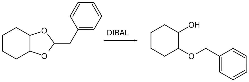 Keywords: DIBAL Bn is.svg Structure of benzylidenacetale with DIBAL Own 2010-11-22 Codc <span class signature-talk >talk</span> PD-chem Organic reductions