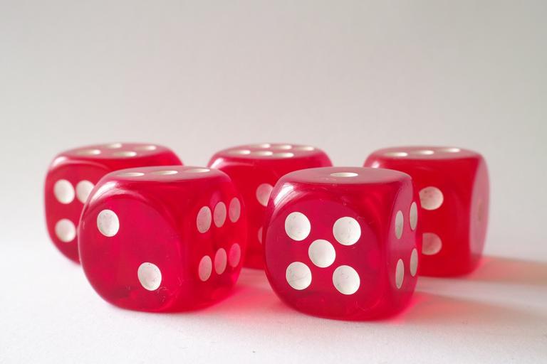 Keywords: dice cubes game play gambling fun roll numbers casino random red dots white