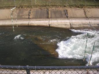 Keywords: Dickerson Middle Hole.jpg en Midle Hole at low water 200 cubic feet per second revealing the submerged rock that creates it Own HowardMorland 2007-02-11 Dickerson Whitewater Course