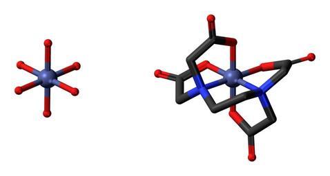 | Keywords: Dicobalt edetate 3D skeletal.png Skeletal stick model hydrogen atoms omitted of the component ions of dicobalt edetate an antidote to cyanide poisoning with a hexaaquacobalt II complex cation left and a cobalt II EDTA anion right Colour code 505050 Carbon C black<br> F51E1E Oxygen O red<br> 3C50FA Nitrogen N blue<br> 7078C0 Cobalt Co grey-blue<br> 2011-07-03 own DS Visualizer Jynto talk Ball-and-stick version Space-filling version Stick version cc-zero Images by Jynto 3D-sticks models Cobalt complexes EDTA complexes aqua complexes |