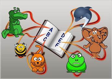 Keywords: dictionary letters learn read abc alphabet education balloons literacy illiterate book c a b d e f animals cartoon alligator bee cat frog elephant dolphin