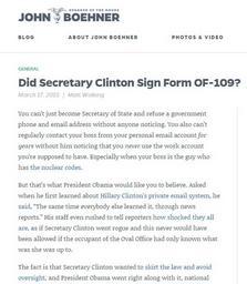 | Keywords: Did Secretary Clinton Sign Form OF-109.jpg Did Secretary Clinton Sign Form OF-109 United States House of Representatives March 17 2015 Speaker of the House John Boehner Did Secretary Clinton Sign Form OF-109 March 17 2015 Matt Wolking You can ™t just become Secretary of State and refuse a government phone and email address without anyone noticing You also can ™t regularly contact your boss from your personal email account for years without him noticing that you never use the work account you ™re supposed to have Especially when your boss is the guy who has the nuclear codes But that ™s what President Obama would like you to believe Asked when he first learned about Hillary Clinton ™s private email system he said The same time everybody else learned it through news reports His staff even rushed to tell reporters how shocked they all are as if Secretary Clinton went rogue and this never would have been allowed if the occupant of the Oval Office had only known what was she was up to The fact is that Secretary Clinton wanted to skirt the law and avoid oversight and President Obama went right along with it national security and transparency and the law be damned Now Clinton ™s team and the White House are scrambling to answer a simple question about whether or not she signed form OF-109 as all State Department employees must do when they leave their jobs Signing the form certifies that the employee has turned over all official records and emails to the federal government as required State Department spokeswoman Jen Psaki couldn ™t say last week or on Friday or again yesterday whether Clinton signed the document And Hillary Clinton herself ignored the question quickly scurrying away when confronted by a reporter in Manhattan As for President Obama he thinks the whole thing is pretty funny It ™s not From the very beginning of the investigation into what happened in Benghazi the Obama administration ™s response and their attempts to blame a YouTube video document requests and even congressional subpoenas were ignored It wasn ™t until after the Select Committee on Benghazi demanded the records that the State Department asked Clinton to turn over her emails and it wasn ™t until Clinton received that request that she provided only the email she wanted to “ nearly two years after she left the administration That ™s a big problem if she signed that form like she was supposed to And that ™s also why Clinton is being urged to turn her server over to a neutral detached third-party arbiter who can determine which documents should be public and which should remain private Meanwhile her story keeps changing First her team said they provided the State Department with some of her emails based on keyword searches Now they say each one of her emails were read before being deleted or turned over What is the truth One thing is certain the Select Committee will continue seeking just that http //www speaker gov/general/did-secretary-clinton-sign-form-109 Did Secretary Clinton Sign Form OF-109 March 17 2015 Matt Wolking Office of Speaker of the House John A Boehner www speaker gov see also https //web archive org/web/20150317170303/http //www speaker gov/general/did-secretary-clinton-sign-form-109 archived by the Internet Archive 2015-03-17 Office of Speaker of the House John A Boehner s Did Secretary Clinton Sign Form OF-109 at Wikisource John Boehner Hillary Rodham Clinton in 2015 Hillary Rodham Clinton-related documents Hillary Rodham Clinton email use as United States Secretary of State Form OF-109 PD-USGov |