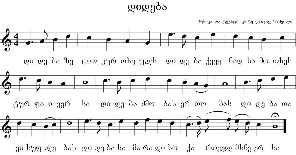 | Keywords: Dideba.gif ka საქართველ ს სახელმწიფ ჰიმ ი 1918 1921 და 1991 2004 წლებში ავტ რი კ ტე ფ ცხვერაშვილი 1889-1959 en National anthem of Georgia from 1918 to 1920 and from 14 November 1990 to 23 April 2004 composed by Kote Potskhverashvili 1889-1959 Own Rastrelli F 09 13 25 November 2008 UTC Dideba |