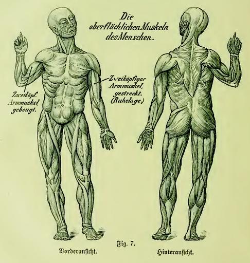 | Keywords: Die Frau als Hausärztin (1911) 007 Die oberflächlichen Muskeln des Menschen.png de Fig 7 Die oberflächlichen Muskeln des Menschen Vorderansicht Links Zweiköpfiger Armmuskel gebeugt <br/> Rechts Zweiköpfiger Armmuskel gestreckt Ruhelage Hinteransicht 1911 Die Frau als Hausärztin Mit 485 Original-Illustrationen 38 Tafeln und Kunstbeilagen in feinstem Farbendruck dem Porträt der Verfasserin und einem Modell-Album Mann und Weib 800 000 Jubiläumsausgabe Süddeutsches Verlagsinstitut Stuttgart 1911 diefraualshaus00fiscuoft Creator Anna Fischer-Dückelmann Custom license marker 2014 01 03 PD-US PD-old Illustrations from Die Frau als Hausärztin Uploaded with UploadWizard Anatomical plates and drawings of muscles |