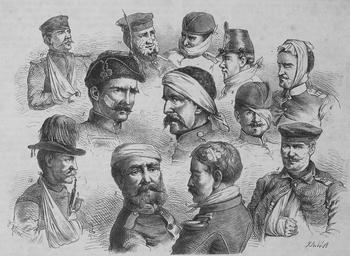 | Keywords: Die Gartenlaube (1866) b 461.jpg Gruppe verschiedener verwundeter Soldaten aus den internationalen Lazaretten in Leipzig <br />Nach der Natur aufgenommen <br>1 Oesterreicher Franz Guraj Groß Kapoc 10 Husaren-Reg Unterofficier “ 2 Preuße Ziethen Husaren-Reg III Gefreiter “ 3 Preuße Berlin Garde-Schütze “ 4 Preuße Brandenb Uhlanen-Reg Nr 11 “ 5 Preuße Reinsdorf Magdeburg 25 Inf -Reg “ 6 Preuße v Schwedler 17 Inf -Reg “ 7 und 8 Oesterreicher Regiment König von Hannover 7 Hornist “ 9 Oesterreicher Gust Gumpl Palanka Franz Ferd -Reg 32 5 Comp Corporal “ 10 Preuße 1 Garde-Reg “ 11 Sachse III Reiter-Reg 1 Schwadron “ 12 Oesterreicher Wenzel Kaisch 13 Jäger-Bataillon<br>Nr 2 3 4 6 Granatverwundungen “ Nr 5 12 Schußverwundungen “ Nr 1 7 11 Hiebverwundungen “ Nr 9 10 Bajonnetverwundungen “ Nr 8 Streifschuß Die_Gartenlaube_ 1866 _461 jpg Die_Gartenlaube_ 1866 _462 jpg PD-old-70-1923 Gartenlaube 1866 Wounded soldiers 1866 in Leipzig Austro-Prussian War |