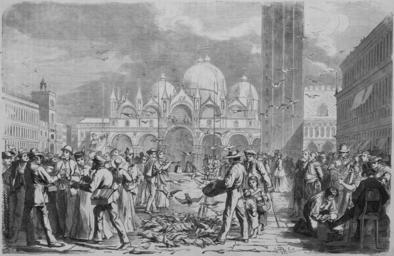 | Keywords: Die Gartenlaube (1866) b 341.jpg Die allmittägliche Taubenfütterung auf dem Marcusplatz in Venedig <br />Originalzeichnung von Paul Thumann Die_Gartenlaube_ 1866 _341 jpg Die_Gartenlaube_ 1866 _342 jpg PD-old-70-1923 Gartenlaube 1866 Paul Thumann Historical images of Piazza San Marco Venice 1866 in Venice |