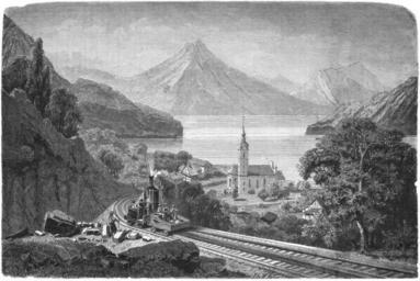 Keywords: Die Gartenlaube (1870) b 660.jpg Am Ausgangspunkt der Rigibahn bei Vitznau <br />Nach der Natur aufgenommen von Töche in Zürich 660 661 Vitznau “Rigi railway Historic views of Rigi railways