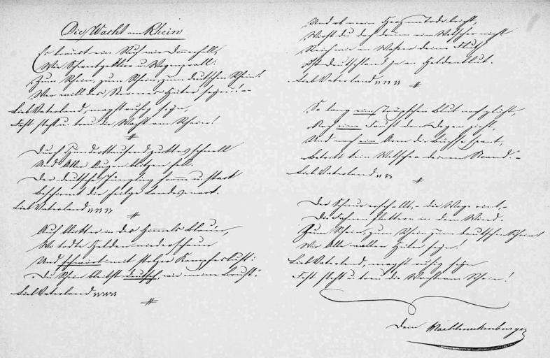 Keywords: Die Gartenlaube (1870) b 667.jpg 667 668 Poetry of Germany Handwriting Max Schneckenburger Die Wacht am Rhein