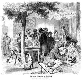 | Keywords: Die Gartenlaube (1872) b 777.jpg 777 778 Ludwig Löffler 1819 “1876 de Bild von Seite 777 der Zeitschrift Die Gartenlaube Image from page 769 of journal Die Gartenlaube 1872 <br />In einem Biergarten zu Straßburg Originalzeichnung von L Löffler Image from page 777 of book Die Gartenlaube 1872 Ludwig Löffler Beer gardens in Germany Strasbourg in the 1870s |