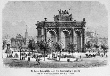 | Keywords: Die Gartenlaube (1876) b 635.jpg 635 636 1876 in Leipzig Augustusplatz Leipzig black and white ImageNote 1 647 1521 1120 139 2408 1672 2 Die beiden Triumphbögen auf dem Augustusplatz in Leipzig Nach der Natur aufgenommen von H Heubner ImageNoteEnd 1 |