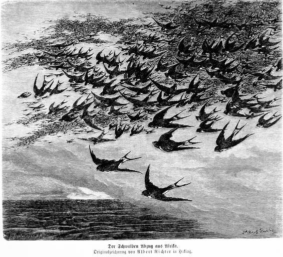 Keywords: Die Gartenlaube (1876) b 263.jpg 263 264 Albert Richter 1845-1898 Swallows in art