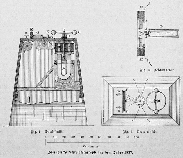 | Keywords: Die Gartenlaube (1887) b 605 2.jpg 605 606 Carl August von Steinheil ImageNote 1 1057 509 289 50 1398 1203 2 Fig 3 Zeichengeber ImageNoteEnd 1 ImageNote 2 219 982 279 42 1398 1203 2 Fig 1 Durchschnitt ImageNoteEnd 2 ImageNote 3 923 978 291 48 1398 1203 2 Fig 2 Obere Ansicht ImageNoteEnd 3 ImageNote 4 626 1097 148 40 1398 1203 2 Centimeter ImageNoteEnd 4 ImageNote 5 351 1137 680 46 1398 1203 2 Steinheil ™s Schreibtelegraph aus dem Jahre 1837 ImageNoteEnd 5 Telegraphy | ||||