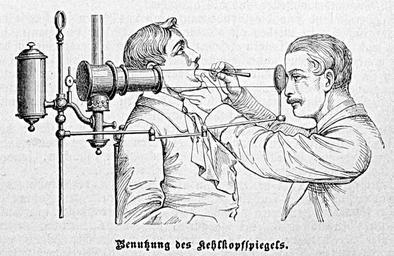 Keywords: Die Gartenlaube (1887) b 705 5.jpg 705 706 ImageNote 1 265 566 439 46 950 618 2 Benutzung des Kehlkopfspiegels ImageNoteEnd 1 Laryngoscope Oral inspections Head mirrors