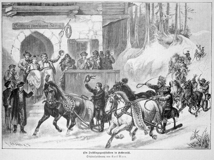 Keywords: Die Gartenlaube (1887) b 129.jpg 129 130 Horse sleighs in art Carl von Marr Black and white drawings