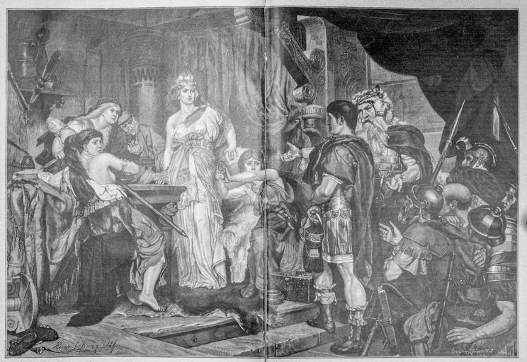 Keywords: Die Gartenlaube (1889) b 004.jpg Gefangennahme Thusneldas durch Germanicus von Heinrich König 004 Thusnelda Heinrich König painter