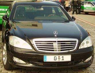 | Keywords: Dienstfahrzeug des Bundespraesidenten.jpg Das Dienstfahrzeug des Bundespräsidenten ein Mercedes-Benz der S-Klasse mit dem Kennzeichen 0-1 The limousine of the President of Germany which can be distinguished from other cars by the vehicle registration plate 0-1 La limousine du président allemand découvrable par la plaque d'immatriculation 0-1 L'auto del presidente della Repubblica Federale di Germania una Mercedes-Benz Classe-S distinguibile dalla targa 0-1 La limusina del presidente alemán reconocible por su plaqua 0-1 Den tyska förbundspresidentens tjänstebil vilket syns på registreringsskylten 0-1 Own 2007-09 Garitzko Presidential automobiles of the Federal Republic of Germany Mercedes-Benz V221 2005 Front views of Mercedes-Benz automobiles Black Mercedes-Benz sedans Mercedes-Benz S-Guard |