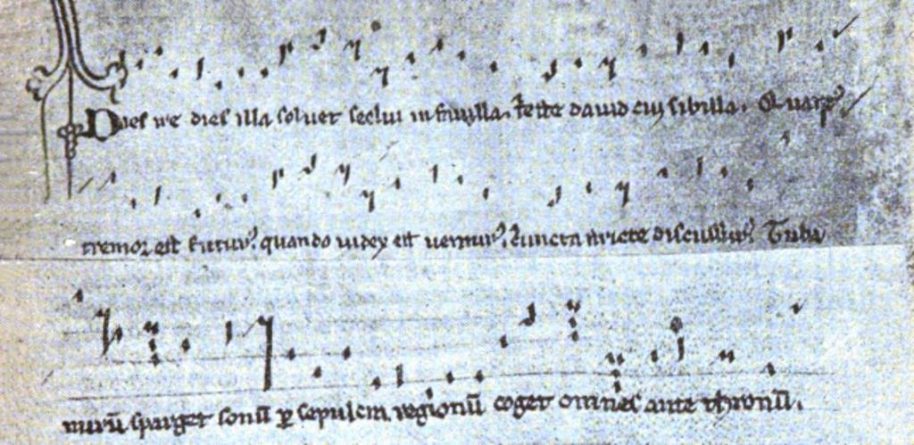 | Keywords: Dies irae ms fragm.jpg en Fragment of sequence «Dies irae» ru Д евнейшая укопись мелодии с текстом «Dies irae» ноти ованной беневентанскими невмами на нотоносце 3 или 4 линейки ; показаны т и начальные ст офы it Napoli Biblioteca Nazionale «Vittorio Emanuele III» VI G 38 century 13 Author PD-old-100 Original upload log ru wikipedia Dies_irae_ms_fragm jpg wikitable - 2014-10-26 08 56 648316 315102 bytes Olorulus <nowiki> описание Fragment of sequence 'Dies irae' источник Haberl Magister choralis 1900 p 236 в емя создания middle of the 13th c авто anonymous </nowiki> __NOTOC__ Dies Irae |