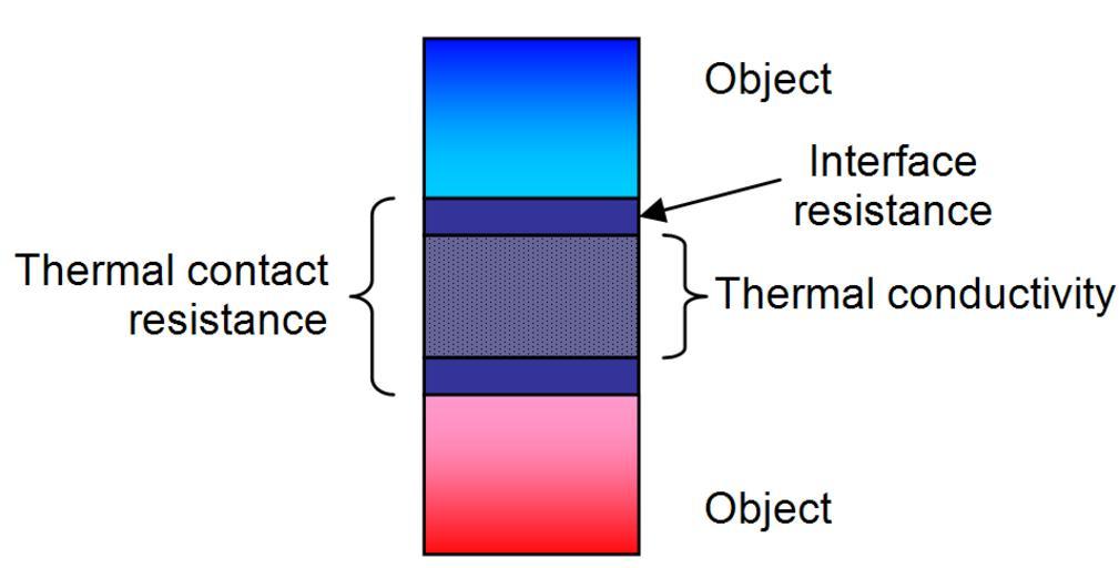 | Keywords: Difference between thermal conductivity of thermal interface materials and thermal contact resistance.png en Illustrates the difference between thermal conductivity of thermal interface materials and thermal contact resistance own Dtc5341 2010-01-25 Heat conduction |