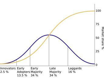 | Keywords: Diffusion of ideas.svg en The diffusion of innovations according to Rogers 1962 With successive groups of consumers adopting the new technology shown in blue its market share yellow will eventually reach the saturation level no Graf som viser diffusjon og spredning av ideer og praksis i samfunnet basert på Rogers 1962 De ulike gruppene som adopterer en idé eller teknologi blå vil til slutt nå et metningsnivå gul 2012-02-28 Based on Rogers E 1962 Diffusion of innovations Free Press London NY USA Rogers Everett Uploaded with UploadWizard Technical diagrams Sociology Innovation Diffusion Marketing Product management Product life cycle diagrams |