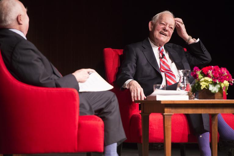 | Keywords: lbj library lbjlibrary austin texas tx usa indoor Former Face the Nation television anchor and veteran journalist Bob Schieffer discussed his storied career with Joseph Califano, Jr., domestic policy advisor to President Johnson, on Thursday evening, Jan. 21, 2016, at the LBJ Presidential Library auditorium. Schieffer retired in May 2015, in his 58th year as a reporter and his 46th year at CBS News. He is one of the few broadcast or print journalists to have covered all four major beats in the nation's capital – the White House, the Pentagon, the State Department and Capitol Hill. He won eight Emmys and numerous other journalism awards. Califano is founder and chairman of the board of The National Center on Addiction and Substance Abuse (CASA) at Columbia University and serves as a trustee of the LBJ Foundation. LBJ Library photo by Jay Godwin - January 21, 2016 Former Face the Nation television anchor and veteran journalist Bob Schieffer discussed his storied career with Joseph Califano, Jr., domestic policy advisor to President Johnson, on Thursday evening, Jan. 21, 2016, at the LBJ Presidential Library auditorium. Schieffer retired in May 2015, in his 58th year as a reporter and his 46th year at CBS News. He is one of the few broadcast or print journalists to have covered all four major beats in the nation's capital – the White House, the Pentagon, the State Department and Capitol Hill. He won eight Emmys and numerous other journalism awards. Califano is founder and chairman of the board of The National Center on Addiction and Substance Abuse (CASA) at Columbia University and serves as a trustee of the LBJ Foundation. LBJ Library photo by Jay Godwin - January 21, 2016 |