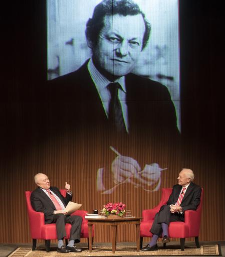 | Keywords: lbj library lbjlibrary austin texas tx usa people Former Face the Nation television anchor and veteran journalist Bob Schieffer discussed his storied career with Joseph Califano, Jr., domestic policy advisor to President Johnson, on Thursday evening, Jan. 21, 2016, at the LBJ Presidential Library auditorium. Schieffer retired in May 2015, in his 58th year as a reporter and his 46th year at CBS News. He is one of the few broadcast or print journalists to have covered all four major beats in the nation's capital – the White House, the Pentagon, the State Department and Capitol Hill. He won eight Emmys and numerous other journalism awards. Califano is founder and chairman of the board of The National Center on Addiction and Substance Abuse (CASA) at Columbia University and serves as a trustee of the LBJ Foundation. LBJ Library photo by Jay Godwin - January 21, 2016 Former Face the Nation television anchor and veteran journalist Bob Schieffer discussed his storied career with Joseph Califano, Jr., domestic policy advisor to President Johnson, on Thursday evening, Jan. 21, 2016, at the LBJ Presidential Library auditorium. Schieffer retired in May 2015, in his 58th year as a reporter and his 46th year at CBS News. He is one of the few broadcast or print journalists to have covered all four major beats in the nation's capital – the White House, the Pentagon, the State Department and Capitol Hill. He won eight Emmys and numerous other journalism awards. Califano is founder and chairman of the board of The National Center on Addiction and Substance Abuse (CASA) at Columbia University and serves as a trustee of the LBJ Foundation. LBJ Library photo by Jay Godwin - January 21, 2016 |