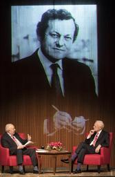 | Keywords: lbj library lbjlibrary austin texas tx usa people Former Face the Nation television anchor and veteran journalist Bob Schieffer discussed his storied career with Joseph Califano, Jr., domestic policy advisor to President Johnson, on Thursday evening, Jan. 21, 2016, at the LBJ Presidential Library auditorium. Schieffer retired in May 2015, in his 58th year as a reporter and his 46th year at CBS News. He is one of the few broadcast or print journalists to have covered all four major beats in the nation's capital – the White House, the Pentagon, the State Department and Capitol Hill. He won eight Emmys and numerous other journalism awards. Califano is founder and chairman of the board of The National Center on Addiction and Substance Abuse (CASA) at Columbia University and serves as a trustee of the LBJ Foundation. LBJ Library photo by Jay Godwin - January 21, 2016 Former Face the Nation television anchor and veteran journalist Bob Schieffer discussed his storied career with Joseph Califano, Jr., domestic policy advisor to President Johnson, on Thursday evening, Jan. 21, 2016, at the LBJ Presidential Library auditorium. Schieffer retired in May 2015, in his 58th year as a reporter and his 46th year at CBS News. He is one of the few broadcast or print journalists to have covered all four major beats in the nation's capital – the White House, the Pentagon, the State Department and Capitol Hill. He won eight Emmys and numerous other journalism awards. Califano is founder and chairman of the board of The National Center on Addiction and Substance Abuse (CASA) at Columbia University and serves as a trustee of the LBJ Foundation. LBJ Library photo by Jay Godwin - January 21, 2016 |