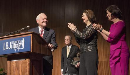 Keywords: lbj library lbjlibrary austin texas tx usa indoor Former Face the Nation television anchor and veteran journalist Bob Schieffer discussed his storied career with Joseph Califano, Jr., domestic policy advisor to President Johnson, on Thursday evening, Jan. 21, 2016, at the LBJ Presidential Library auditorium. Schieffer retired in May 2015, in his 58th year as a reporter and his 46th year at CBS News. He is one of the few broadcast or print journalists to have covered all four major beats in the nation's capital – the White House, the Pentagon, the State Department and Capitol Hill. He won eight Emmys and numerous other journalism awards. Califano is founder and chairman of the board of The National Center on Addiction and Substance Abuse (CASA) at Columbia University and serves as a trustee of the LBJ Foundation. LBJ Library photo by Jay Godwin - January 21, 2016 Former Face the Nation television anchor and veteran journalist Bob Schieffer discussed his storied career with Joseph Califano, Jr., domestic policy advisor to President Johnson, on Thursday evening, Jan. 21, 2016, at the LBJ Presidential Library auditorium. Schieffer retired in May 2015, in his 58th year as a reporter and his 46th year at CBS News. He is one of the few broadcast or print journalists to have covered all four major beats in the nation's capital – the White House, the Pentagon, the State Department and Capitol Hill. He won eight Emmys and numerous other journalism awards. Califano is founder and chairman of the board of The National Center on Addiction and Substance Abuse (CASA) at Columbia University and serves as a trustee of the LBJ Foundation. LBJ Library photo by Jay Godwin - January 21, 2016