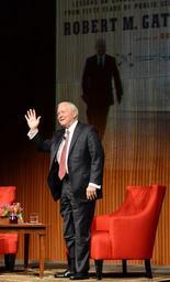 | Keywords: lbj library lbjlibrary austin texas lyndon johnson lyndonjohnson president tx usa Dr. Gates waves to the audience at the close of the event. Former U.S. Secretary of Defense Dr. Robert Gates appeared in the LBJ Auditorium on Thursday, January 28th, 2016, as the third annual Tom Johnson lecturer in a discussion with LBJ Presidential Library Director Mark Updegrove. Prior to the event, Dr. Gates signed his new book, A Passion for Leadership: Lessons on Change and Reform from Fifty Years of Public Service. Dr. Gates served as defense secretary for both President George W. Bush and President Barack Obama. He also was an officer in the U.S. Air Force and worked for the CIA before being appointed director of that agency. He was a member of the National Security Council staff in four administrations, and served eight presidents, both Democrats and Republicans. He was president of Texas A&M University from 2002 to 2006; is currently chancellor of the College of William & Mary in Williamsburg, Virginia, where he earned a bachelor’s degree; was named president of the Boy Scouts of America in 2013; and has served on several corporate boards of directors. LBJ Library photo by Jay Godwin - January 28, 2016 Dr. Gates waves to the audience at the close of the event. Former U.S. Secretary of Defense Dr. Robert Gates appeared in the LBJ Auditorium on Thursday, January 28th, 2016, as the third annual Tom Johnson lecturer in a discussion with LBJ Presidential Library Director Mark Updegrove. Prior to the event, Dr. Gates signed his new book, A Passion for Leadership: Lessons on Change and Reform from Fifty Years of Public Service. Dr. Gates served as defense secretary for both President George W. Bush and President Barack Obama. He also was an officer in the U.S. Air Force and worked for the CIA before being appointed director of that agency. He was a member of the National Security Council staff in four administrations, and served eight presidents, both Democrats and Republicans. He was president of Texas A&M University from 2002 to 2006; is currently chancellor of the College of William & Mary in Williamsburg, Virginia, where he earned a bachelor’s degree; was named president of the Boy Scouts of America in 2013; and has served on several corporate boards of directors. LBJ Library photo by Jay Godwin - January 28, 2016 |