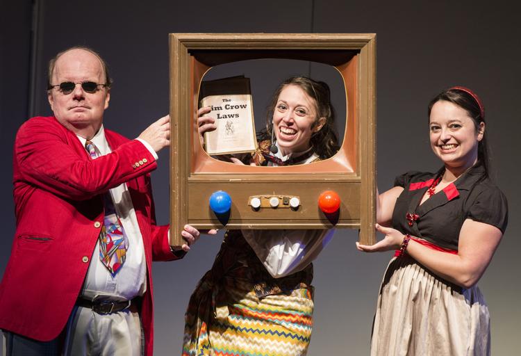 | Keywords: lbj library lbjlibrary austin texas lyndon johnson lyndonjohnson president tx usa people indoor Craig Kanne, Jess Hughes and Sara Billeaux. Pollyanna Theatre Company, a resident theatrical company of the Long Center for Performing Arts in Austin, revived its highly successful 2014 inaugural run of the civil rights-focused play, Liberty! Equality! And Fireworks! by Gregory S. Perrin for a performance at the LBJ Presidential Library on Thursday, February 18, 2016. The special production was free, open to the public, and performed in the LBJ Auditorium. Liberty! Equality! And Fireworks! is set in a history museum. The play's characters, a group of 4th grade students (portrayed by adult professional actors), learn about the U.S. civil rights movement when legendary images from the 1960s come to life and talk to the children. These characters entertain and enlighten, taking children on a fascinating journey through history. LBJ Library photo by Jay Godwin 02/18/2016 Craig Kanne, Jess Hughes and Sara Billeaux. Pollyanna Theatre Company, a resident theatrical company of the Long Center for Performing Arts in Austin, revived its highly successful 2014 inaugural run of the civil rights-focused play, Liberty! Equality! And Fireworks! by Gregory S. Perrin for a performance at the LBJ Presidential Library on Thursday, February 18, 2016. The special production was free, open to the public, and performed in the LBJ Auditorium. Liberty! Equality! And Fireworks! is set in a history museum. The play's characters, a group of 4th grade students (portrayed by adult professional actors), learn about the U.S. civil rights movement when legendary images from the 1960s come to life and talk to the children. These characters entertain and enlighten, taking children on a fascinating journey through history. LBJ Library photo by Jay Godwin 02/18/2016 |