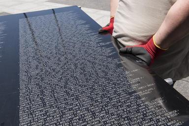 | Keywords: dsc_6743.nef dsc6743nef austin tx usa A half-scale replica of the Vietnam Veterans Memorial in Washington, D.C., is assembled outside of the LBJ Presidential Library on Thursday, April 21, 2016. “The Wall That Heals” is offered by the Vietnam Veterans Memorial Fund so local communities and Vietnam veterans can experience the memorial to the fallen, which lists 58,307 names. The Wall will be on display 24/7 on the plaza outside the LBJ Presidential Library from Friday, April 22 through Thursday, April 28 as part of a Vietnam War Summit event at the library. LBJ Library photo by Jay Godwin 04/21/2016. A half-scale replica of the Vietnam Veterans Memorial in Washington, D.C., is assembled outside of the LBJ Presidential Library on Thursday, April 21, 2016. “The Wall That Heals” is offered by the Vietnam Veterans Memorial Fund so local communities and Vietnam veterans can experience the memorial to the fallen, which lists 58,307 names. The Wall will be on display 24/7 on the plaza outside the LBJ Presidential Library from Friday, April 22 through Thursday, April 28 as part of a Vietnam War Summit event at the library. LBJ Library photo by Jay Godwin 04/21/2016. |