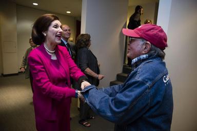 Keywords: winner Lynda Bird Johnson Robb, daughter of President Lyndon Johnson, greets singer/songwriter Country Joe McDonald on Thursday, April 28, 2016, at the LBJ Presidential Library. McDonald, a Navy veteran, later performed as part of the LBJ Library's Vietnam War Summit McDonald discussed how the war protest music of the 1960s and 1970s helped to comfort U.S. troops in Vietnam while fueling the anti-war movement at home. He performed his most memorable Vietnam War protest song, "I Feel Like I'm Fixin' to Die Rag." He appeared at the LBJ Library with folk singer Peter Yarrow, who performed with his folk group—Peter, Paul and Mary—at the huge 1969 moratorium rally in Washington, D.C. against the Vietnam War. The music discussion was moderated by Bob Santelli, executive director of the GRAMMY Museum. LBJ Library photo by David Hume Kennerly 04/28/2016. Lynda Bird Johnson Robb, daughter of President Lyndon Johnson, greets singer/songwriter Country Joe McDonald on Thursday, April 28, 2016, at the LBJ Presidential Library. McDonald, a Navy veteran, later performed as part of the LBJ Library's Vietnam War Summit McDonald discussed how the war protest music of the 1960s and 1970s helped to comfort U.S. troops in Vietnam while fueling the anti-war movement at home. He performed his most memorable Vietnam War protest song, "I Feel Like I'm Fixin' to Die Rag." He appeared at the LBJ Library with folk singer Peter Yarrow, who performed with his folk group—Peter, Paul and Mary—at the huge 1969 moratorium rally in Washington, D.C. against the Vietnam War. The music discussion was moderated by Bob Santelli, executive director of the GRAMMY Museum. LBJ Library photo by David Hume Kennerly 04/28/2016.