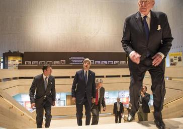Keywords: dsc_4597.nef dsc4597nef austin tx usa U.S. Secretary of State John Kerry, center, ascends the steps to the Great Hall in the LBJ Presidential Library on Wednesday, April 27, 2016. At left is Mark Updegrove, director of the LBJ Library. In right foreground is Ben Barnes, vice chairman of the LBJ Foundation Board of Trustees, former Lt. Gov. of Texas, and former Speaker of the Texas House of Representatives. Kerry, a Vietnam War veteran, delivered the keynote evening address at the LBJ Library’s Vietnam War Summit. Kerry, a former U.S. senator and co-founder of Vietnam Veterans of America, gained national attention after speaking out publicly against the Vietnam War returning from two tours of duty. Kerry’s speech was part of the LBJ Library’s three-day Vietnam War Summit, which continues through Thursday, April 28. LBJ Library photo by Jay Godwin 04/27/2016. U.S. Secretary of State John Kerry, center, ascends the steps to the Great Hall in the LBJ Presidential Library on Wednesday, April 27, 2016. At left is Mark Updegrove, director of the LBJ Library. In right foreground is Ben Barnes, vice chairman of the LBJ Foundation Board of Trustees, former Lt. Gov. of Texas, and former Speaker of the Texas House of Representatives. Kerry, a Vietnam War veteran, delivered the keynote evening address at the LBJ Library’s Vietnam War Summit. Kerry, a former U.S. senator and co-founder of Vietnam Veterans of America, gained national attention after speaking out publicly against the Vietnam War returning from two tours of duty. Kerry’s speech was part of the LBJ Library’s three-day Vietnam War Summit, which continues through Thursday, April 28. LBJ Library photo by Jay Godwin 04/27/2016.