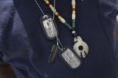 | Keywords: the wall that heals at the lbj library: thewallthathealsatthelbjlibrary dig13883 austin texas Vietnam veteran Goyi Gutierrez wears his dog tags and P38 can opener as he visits “The Wall That Heals,” a half-scale replica of the Vietnam Veterans Memorial in Washington, D.C., on display on the plaza outside the LBJ Presidential Library. Gutierrez visited the Wall on Tuesday, April 26, 2016, with his cousin and fellow Vietnam veteran Ernesto Burr. Gutierrez served with the Army's 4th Infantry at Pleiku in 1968 during the Tet Offensive. Burr served in the Army's 25th Infantry at Xuan Loc in 1970-71. “The Wall That Heals” is offered by the Vietnam Veterans Memorial Fund so local communities and Vietnam veterans can experience the memorial to the fallen, which lists 58,307 names. The Wall will be on display 24/7 from Friday, April 22 through Thursday, April 28 as part of a Vietnam War Summit event at the LBJ Presidential Library. LBJ Library photo by Marsha Miller 4/26/2016. Vietnam veteran Goyi Gutierrez wears his dog tags and P38 can opener as he visits “The Wall That Heals,” a half-scale replica of the Vietnam Veterans Memorial in Washington, D.C., on display on the plaza outside the LBJ Presidential Library. Gutierrez visited the Wall on Tuesday, April 26, 2016, with his cousin and fellow Vietnam veteran Ernesto Burr. Gutierrez served with the Army's 4th Infantry at Pleiku in 1968 during the Tet Offensive. Burr served in the Army's 25th Infantry at Xuan Loc in 1970-71. “The Wall That Heals” is offered by the Vietnam Veterans Memorial Fund so local communities and Vietnam veterans can experience the memorial to the fallen, which lists 58,307 names. The Wall will be on display 24/7 from Friday, April 22 through Thursday, April 28 as part of a Vietnam War Summit event at the LBJ Presidential Library. LBJ Library photo by Marsha Miller 4/26/2016. |