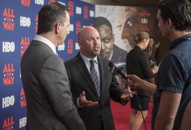 | Keywords: dig13890-034.nef dig13890034nef austin tx usa indoor Darryl Frank, left, and Justin Falvey talk to the media on the red carpet. In conjunction with HBO and the LBJ School of Public Affairs, the LBJ Library held a special preview screening and discussion of the new HBO film "All the Way" starring Bryan Cranston in his Tony Award-winning role as Lyndon Johnson and Anthony Mackie as Martin Luther King, Jr. Following the screening of the film, writer Robert Schenkkan, director Jay Roach, actors Bryan Cranston and Anthony Mackie, and historian and consultant on the film Doris Kearns Goodwin, joined Library Director Mark Updegrove on stage for a discussion. The film will debut on HBO on May 21, 2016. LBJ Library photo by Jay Godwin Darryl Frank, left, and Justin Falvey talk to the media on the red carpet. In conjunction with HBO and the LBJ School of Public Affairs, the LBJ Library held a special preview screening and discussion of the new HBO film "All the Way" starring Bryan Cranston in his Tony Award-winning role as Lyndon Johnson and Anthony Mackie as Martin Luther King, Jr. Following the screening of the film, writer Robert Schenkkan, director Jay Roach, actors Bryan Cranston and Anthony Mackie, and historian and consultant on the film Doris Kearns Goodwin, joined Library Director Mark Updegrove on stage for a discussion. The film will debut on HBO on May 21, 2016. LBJ Library photo by Jay Godwin |